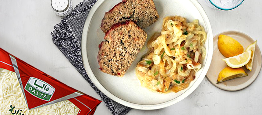 - نیمی از پیازهای مزه دار شده را در کف ظرف آماده شده پخش کنید سپس نیمی از مخلوط پنیر را روی پیازها پخش کنید. این کار را با باقی مانده پیاز و مخلوط پنیر تکرار کنید. ۴ قاشق غذاخوری کره باقی مانده را مکعب کرده، روی پنیر بچینید و ظرف پخت را با فویل بپوشانید. به مدت ۴ دقیقه با فویل درون فر قراداده و سپس فویل را برداشته و ۲۰ دقیقه دیگر درون فر قرار دهید. در آخر پنیر باقی ماده را روی آن ریخته و ۱۰ دقیقه دیگر درون فر قرار دهید تا پنیر برشته و طلایی شود.