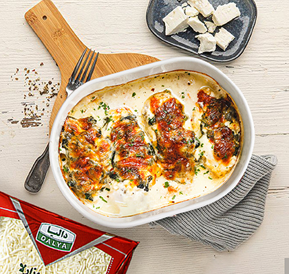- موزارلای رنده شده و پنیر خامهایی را روی خمیر اضافه کنید و بهمدت ۱۵ دقیقه در فر قرار دهید.