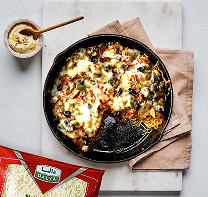 سپس ظرف مناسبی به قطر ۲۳ سانتیمتر را چرب کرده و پاستا را کف قالب بریزید و مواد گوشتی را روی آن بریزید و مخلوط تخممرغ، ماست و نیمی از پنیر را روی گوشتی بریزید و باقیمانده پنیر را روی آن پاشیده و در فر گرم کرده و با دمای ۱۸۰ درجه سانتیگراد به مدت ۴۵ تقریبی دقیقه بپزید.