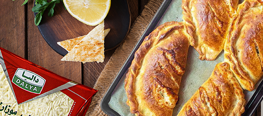 - پس از اضافه کردن فیلینگ، انگشت خود را در مقداری آب فرو کنید و آن را به آرامی در اطراف لبه کالزون قرار دهید. سپس قسمت پر نشده خمیر را بردارید و روی فیلینگ تا بزنید. لبه های کالزون را با انگشت ببندید و سفت کنید.