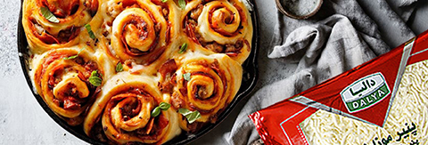 ابتدا نان یوفکای دالیا را به اندازه های ۱۰×۱۰ سانت یمتری برش زده و داخل قالب کاپ کیک فرو کنید تا شکل کاسه یا گلدان شود و به مدت ۱۰ دقیقه در فر با دمای ۱۸۰ درجه سانتی گراد قرار دهید تا خودش را بگیرد،